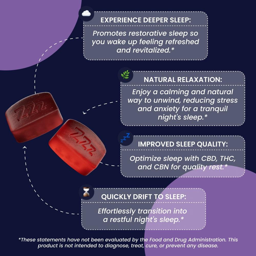 We went out to create a highly effective gummy that tastes great, is low in sugar, and is made with the highest-quality hemp extract on the market – and we did just that. Our Deep Zzzs gummies are specifically formulated to help you get to sleep and, most importantly, stay asleep.* We carefully tested and engineered the perfect ratio of THC, CBD, and CBN, not too much to not little. 82% of users in our independent 3rd party study reported that it helped them stay asleep.